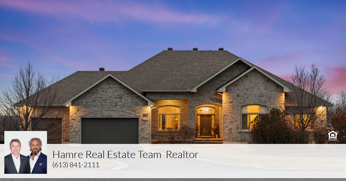Extraordinary bungalow in prestigious Cumberland Estates, cul-de-sac pie-shaped 2.36-acre lot w/elevated rear view, stone exterior, interlock landscaping, exterior pot lighting & front veranda, foyer w/oversized heated tile, millwork & 12-ft ceilings, open dining rm w/built-in cabinet, living rm w/custom hearth fireplace, hardwood flooring & pot lights, centre island kitchen, granite countertops, recessed sink & backsplash, fridge & freezer, separate eating area w/multiple windows & garden doors, 2 pc powder rm & main floor laundry, primary bedroom w/French doors, coffered ceiling, 3 x floor-to-ceiling windows, dressing walk-in closet & luxurious six-piece en-suite w/standalone tub, heated tile flooring/towel rack, glass shower & vanity. Additional bedrooms, wide hardwood Scarlett O'Hara staircase, recreational rm, den, gym, additional bdrms, storage & rough-ins for potential in-law suite w/direct side entrance & 2nd staircase, insulated 3 x garage, 24 Hr irrevocable on all offers.