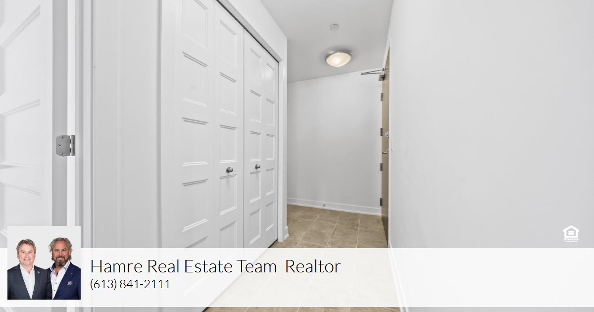 Architecturally composed corner residence w/dual covered balconies, southern exposure, & elevated Ottawa River views. This two-bedroom suite is thoughtfully designed for both form & function, offering refined materials & intentional spatial flow, 37.5" wide entry door introduces a welcoming foyer w/closet storage, setting a tone of accessibility & understated sophistication. Wide-plank engineered hardwood & oversized ceramic tile run throughout, complemented by flat ceilings, boxed baseboards, recessed pot lighting, & modern five-panel interior doors, centre-island kitchen anchors the living space w/quartz surfaces, breakfast bar seating, pot drawers, & two-tone shaker cabinetry w/integrated garage feature. A recessed double sink positioned beneath an oversized window captures natural light & river vistas. The living room's corner glazing frames panoramic water views & morning sun, while the dining area integrates a walk-in pantry for seamless entertaining, primary suite is designed as a private retreat w/its own patio door, walk-through double-sided closet, & a five-piece ensuite featuring twin vanities & a glass-enclosed shower w/rain head & European wand. The second bedroom offers a private balcony, walk-in closet, & pocket-door access to a three-piece cheater ensuite w/double-wide shower, allowing flexibility for guests or workspace, full-size laundry, a separate storage locker, & the rare inclusion of two underground parking spaces enhance livability & long-term value. Residents enjoy curated amenities including a fitness studio w/sunset views, an elegant lounge, rooftop pool, hot tub, & outdoor terrace w/BBQ area. All positioned to embrace the natural landscape of the Ottawa River. A residence defined by light, proportion, & elevated riverside living. 24 hour irrevocable on all offers.