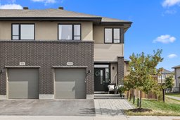 This beautifully upgraded end unit townhome is waiting for you in Blackstone, a community loved for its schools, shopping, and parks nearby. The open-concept floor plan is designed for modern living, with a bonus loft space upstairs and the convenience of second-level laundry. The primary retreat is set apart from bedrooms 2 and 3, creating the ideal layout for growing families. The basement comes with a rough-in for a future bathroom plus custom storage and cabinetry already built in. Step outside to a fully fenced pie-shaped backyard built for entertaining. Enjoy a large chevron-pattern deck, extra privacy fencing, patio stone, a built-in fire pit, and a hot tub pad ready for your spa retreat. Additional highlights include a built-in fireplace in the living room and the added bonus of a walking path right beside the home.
