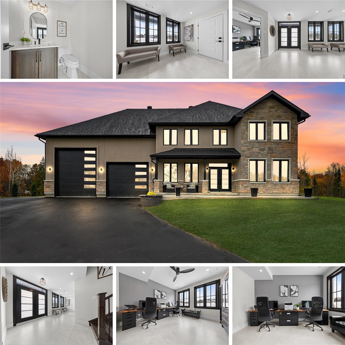 Stunning Custom-Built 4-bedroom, 3-bathroom home on a peaceful cul-de-sac in Cumberland. Situated on two acres of manicured land, this property offers luxury, functionality, and tranquillity.Paved driveway, concrete walkway, and charming front verandah create a welcoming first impression. Step inside through the dual entrance doors to a spacious foyer, The main floor is designed for both comfort and entertainment, featuring 48 porcelain tile flooring throughout. A private den offers the ideal space for a home office, while the open-concept living and dining areas provide plenty of room to gather. The gourmet kitchen is a chefs dream, custom cabinetry, pot drawers, dual sinks with instant hot water, quartz countertops, and a center island with a breakfast bar. High-end appliances, including a 48 gas range and a full-size fridge and freezer, elevate the kitchen's functionality, while the walk-in pantry ensures ample storage. Large windows flood the space with natural light, and the living room features a stunning gas fireplace with custom feature walls. Patio doors lead to an impressive 22x80 ft concrete patio, complete with a 12x24 ft gazebo and an 8-person hot tub, perfect for relaxing or entertaining. the second level features four generously sized bedrooms, including a luxurious primary suite with a walk-in closet and spa-like ensuite bathroom, offering a walk-in shower and dual sinks. A versatile loft area provides additional space for a home office, media room, or cozy retreat. The garage features a 14 ft door plus a multi car entry. 18ft ceilings, heated floors & A/C, bonus 12 x 15 loft. The outdoor space is impressive, with a sprinkler system ensuring lush greenery. The backyard is equipped with BBQ and fireplace. Additional highlights include radiant in-floor heating on the main floor and in the garage, 200-amp service, natural gas, central air conditioning, and custom lighting with pot lights throughout.